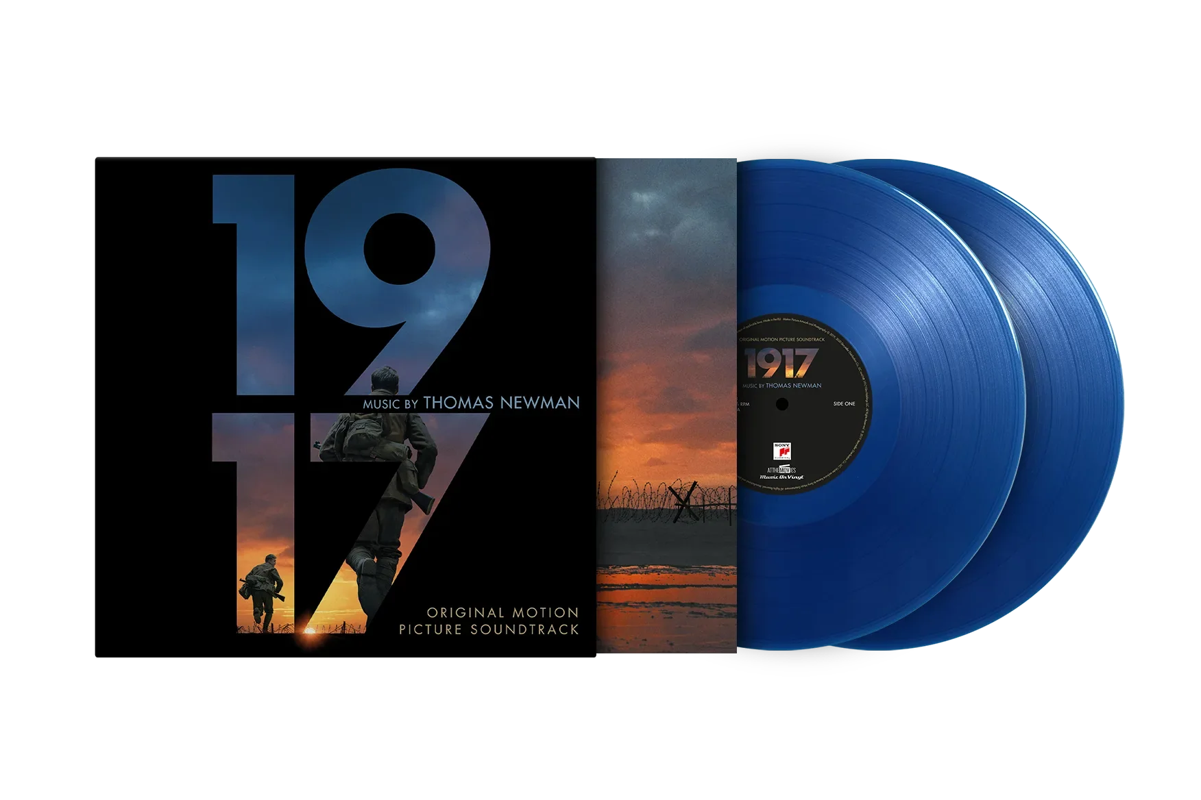 1917 is available as a limited edition of 500 individually numbered copies on translucent blue coloured vinyl. The package includes an 8-page booklet with movie stills and liner notes by Sam Mendes.