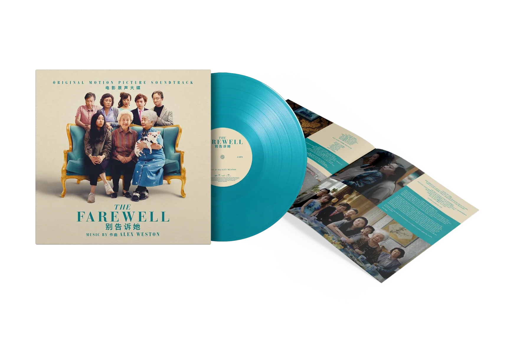 The Farewell is available on vinyl for the first time as a limited edition of 500 copies on turquoise coloured vinyl. The soundtrack is cut on 45 RPM and the vinyl package includes a 4-page booklet.